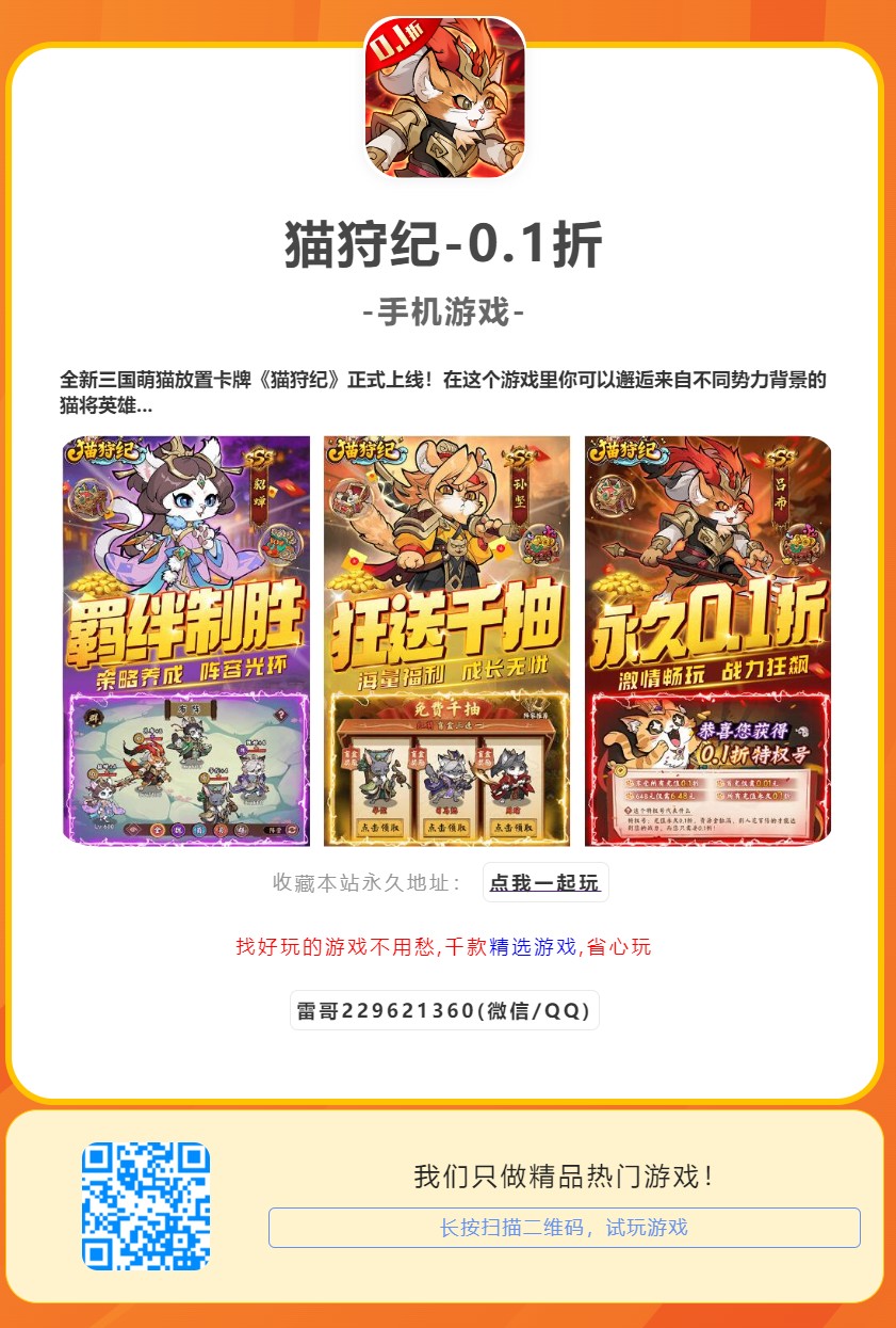 游戏福利:全新三国萌猫放置卡牌《猫狩纪》称霸三国,书写你的热血传奇!