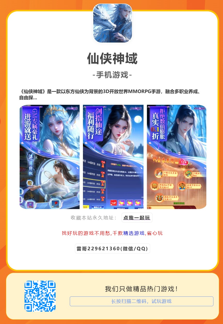《仙侠神域》是一款以东方仙侠为背景的3D开放世界MMORPG手游,融合多职业养成、自由探索与跨服争霸玩法。玩家将扮演天命修士,在浩瀚仙域中创立宗门、驯养灵兽,探索九重天秘境,挑战上古魔神,体验从凡尘到飞升成仙的全流程修仙史诗。游戏采用国风写实美术,结合动态昼夜天气、神兵化形拟态及无锁定连招战斗,打造高自由度的沉浸式修仙世界。