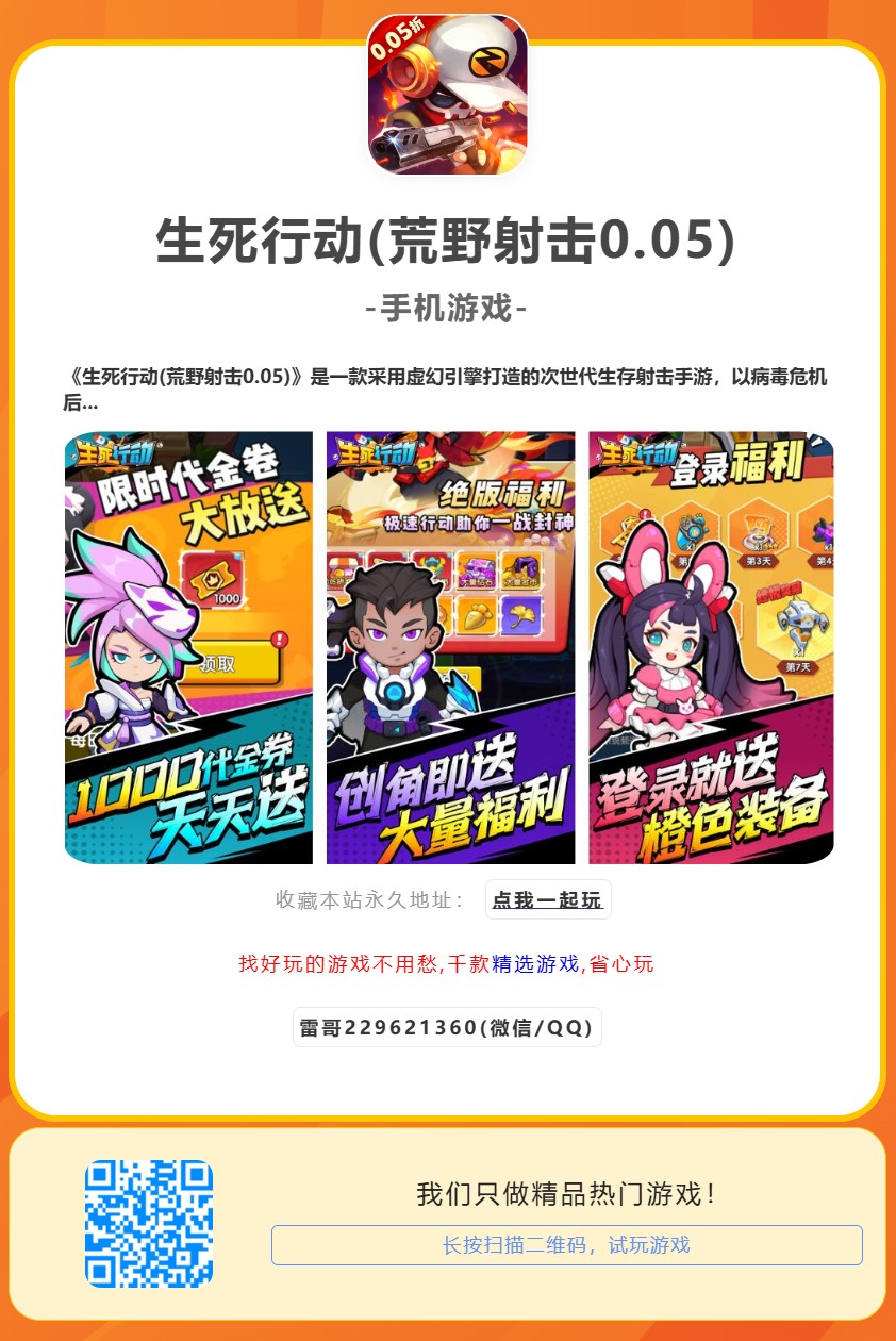 《生死行动(荒野射击0.05)》是一款采用虚幻引擎打造的次世代生存射击手游,以病毒危机后的荒野废土为背景。玩家将扮演幸存者小队成员,在开放世界中搜集物资、制作武器、建立据点,并与变异生物、敌对玩家展开生死对抗。其核心特色在于拟真弹道系统、动态天气生存机制及0.05版本独有的“辐射区突围”模式,为硬核射击爱好者提供沉浸式生存体验。